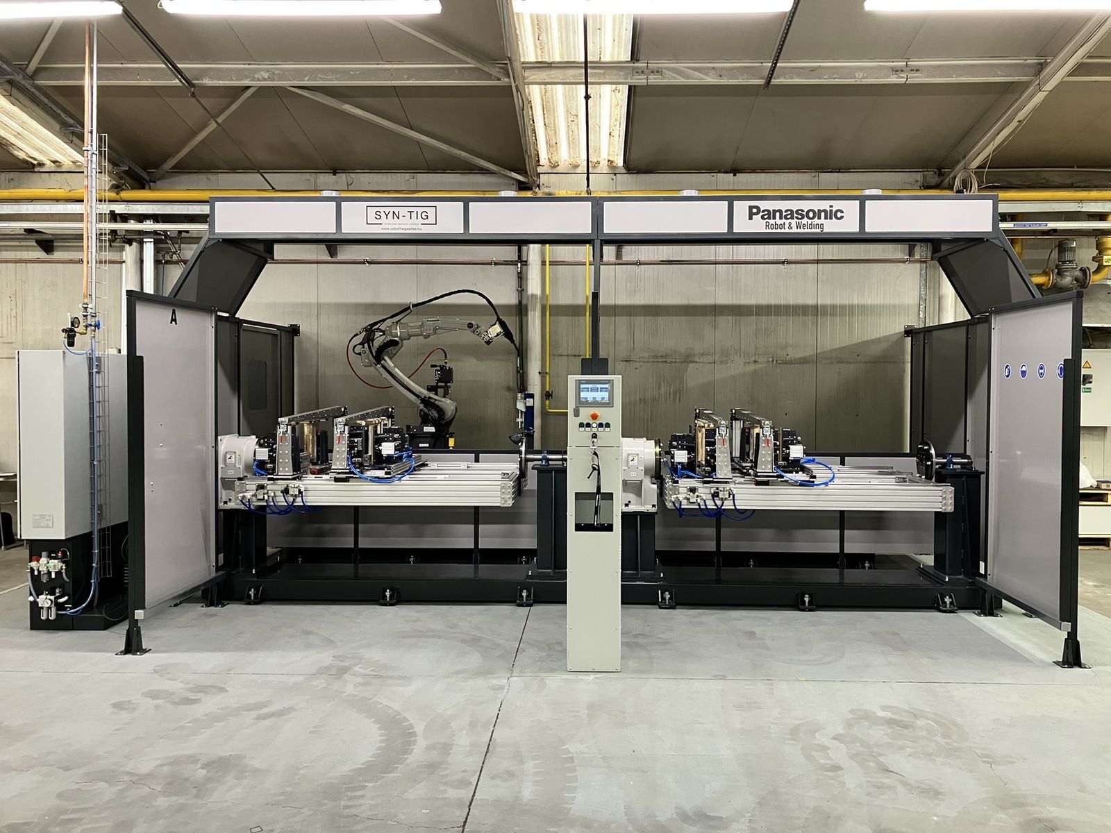 A Panasonic A-E-Frame-S Szuper Aktív (S-AWP) hegesztőrobot rendszer – megrendelőnk gyártási folyamataihoz tervezve, a maximális teljesítmény érdekében.