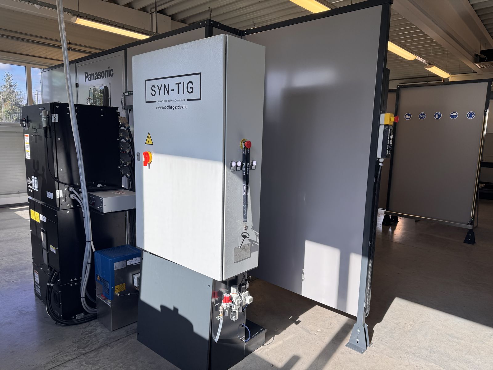 A Syn-Tig Kft. által fejlesztett Panasonic PA-H-Frame-1PD-1DK hegesztőrobot rendszer megrendelőnk elképzeléseinek megfelelően, egyedi igények alapján készült, és jelenleg is telephelyén működik, ahol napi termelésben bizonyítja teljesítményét és megbízhatóságát. A rendszert a tervezésétől a gyártáson át a telepítésig mindössze 14 hét alatt valósítottuk meg, biztosítva a technológia gyors és hatékony integrációját partnerünk gyártási környezetébe.