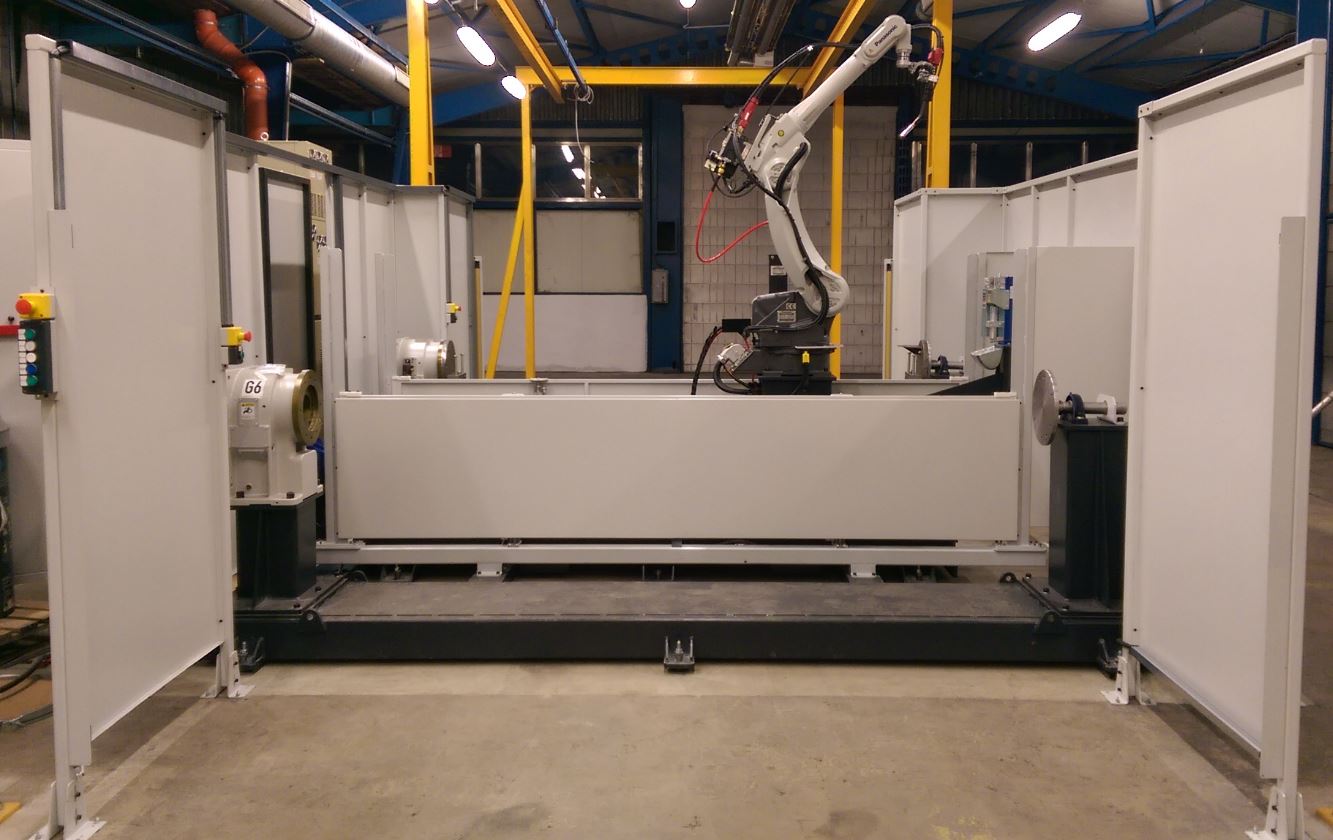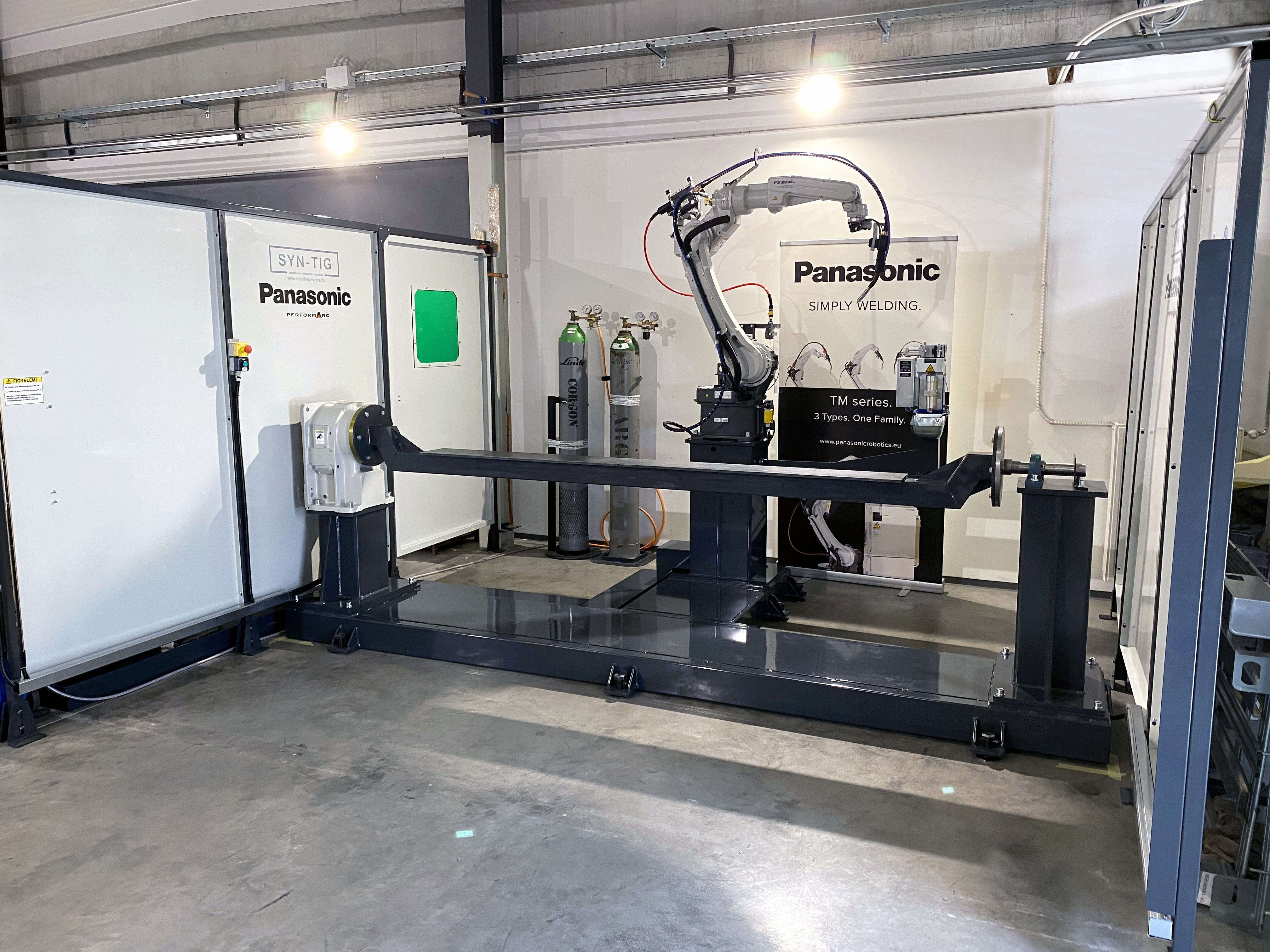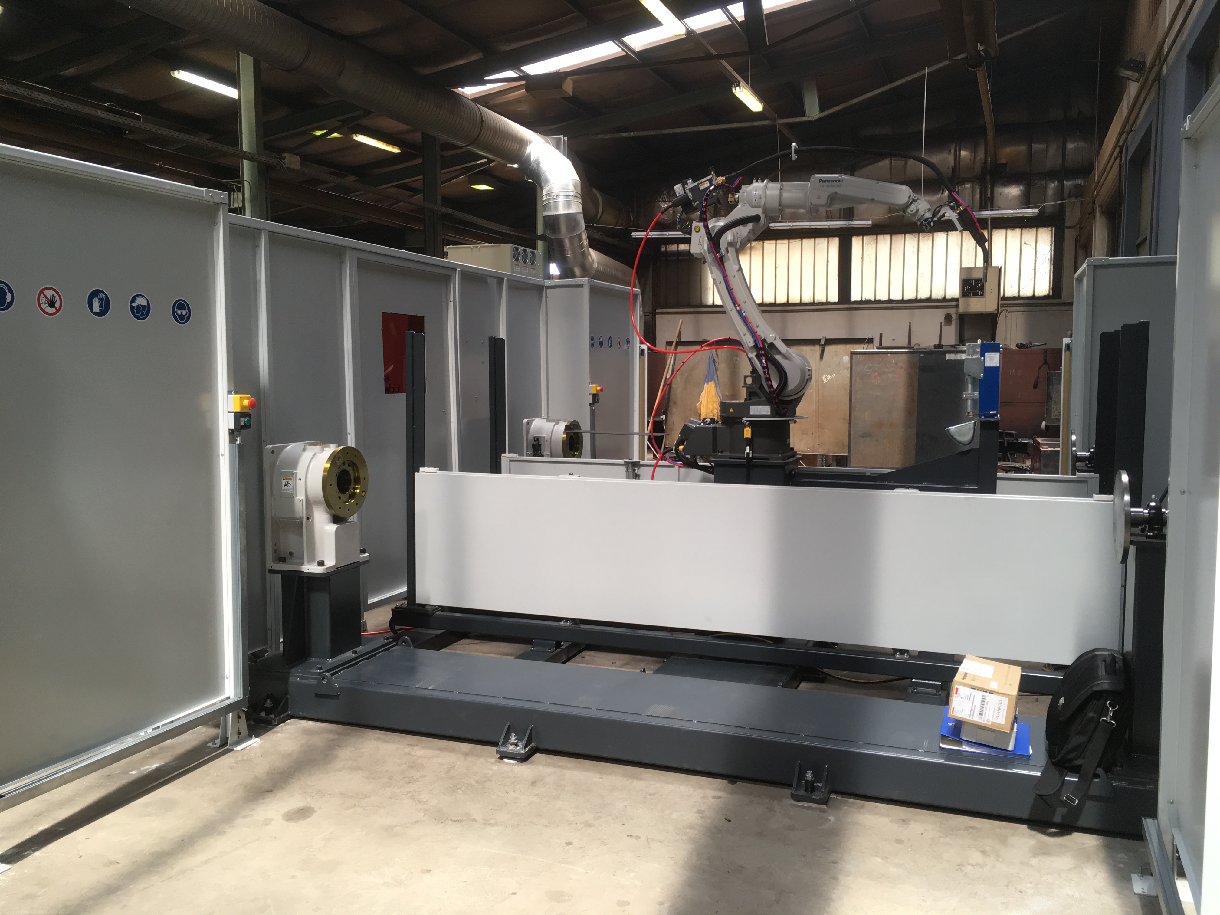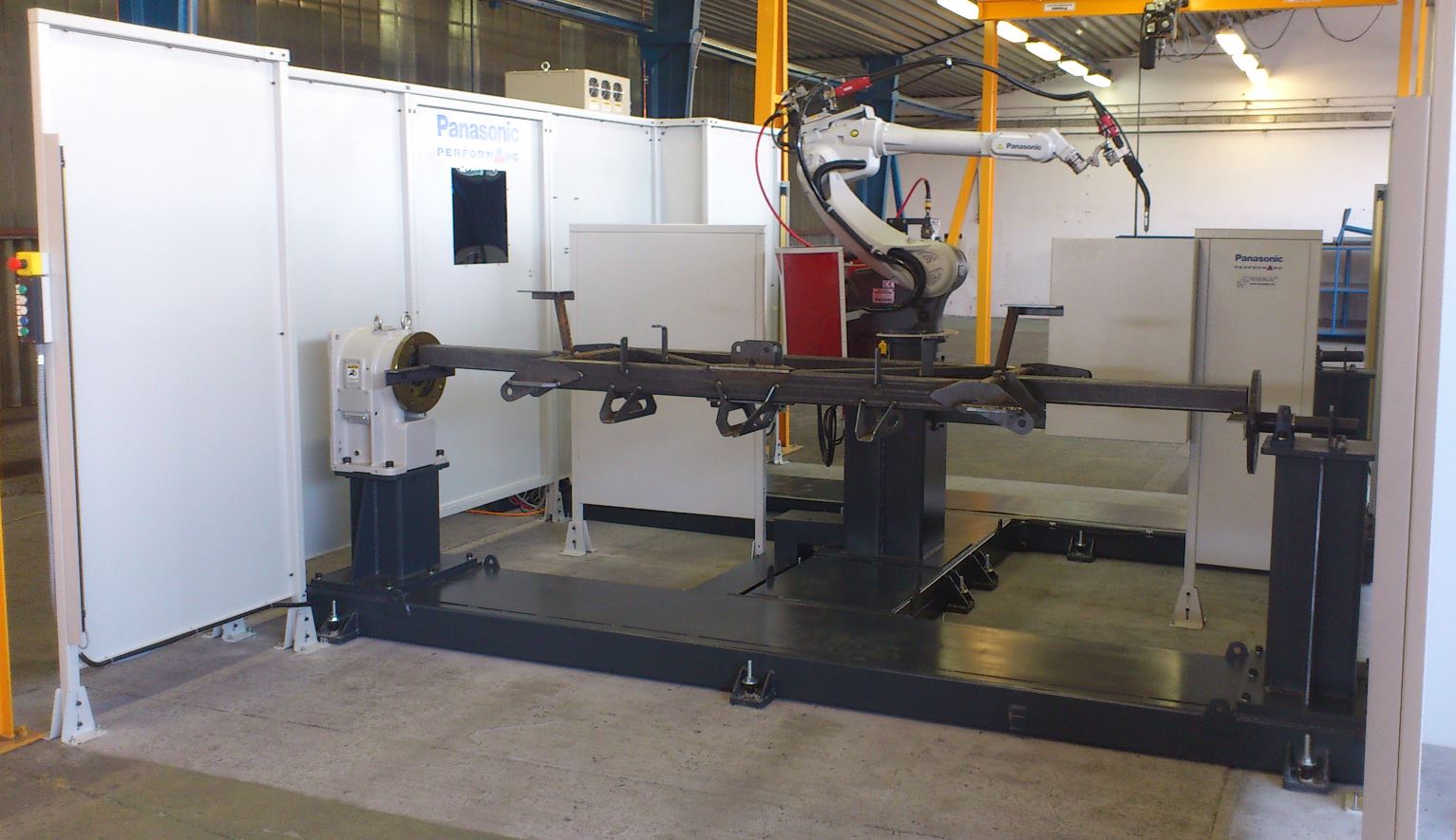 Robot típusa: Panasonic TM-1800Hegesztő áramforrás: Panasonic WG3 (350A)Munkakábel: Panasonic 400A vízhűtéses, szeparált kivitelPozícionáló berendezés: 2 x Panasonic PD500 (500 kg terhelhetőség)