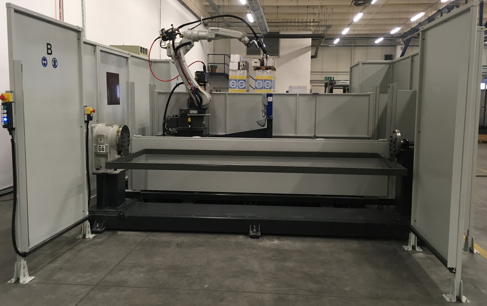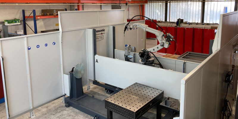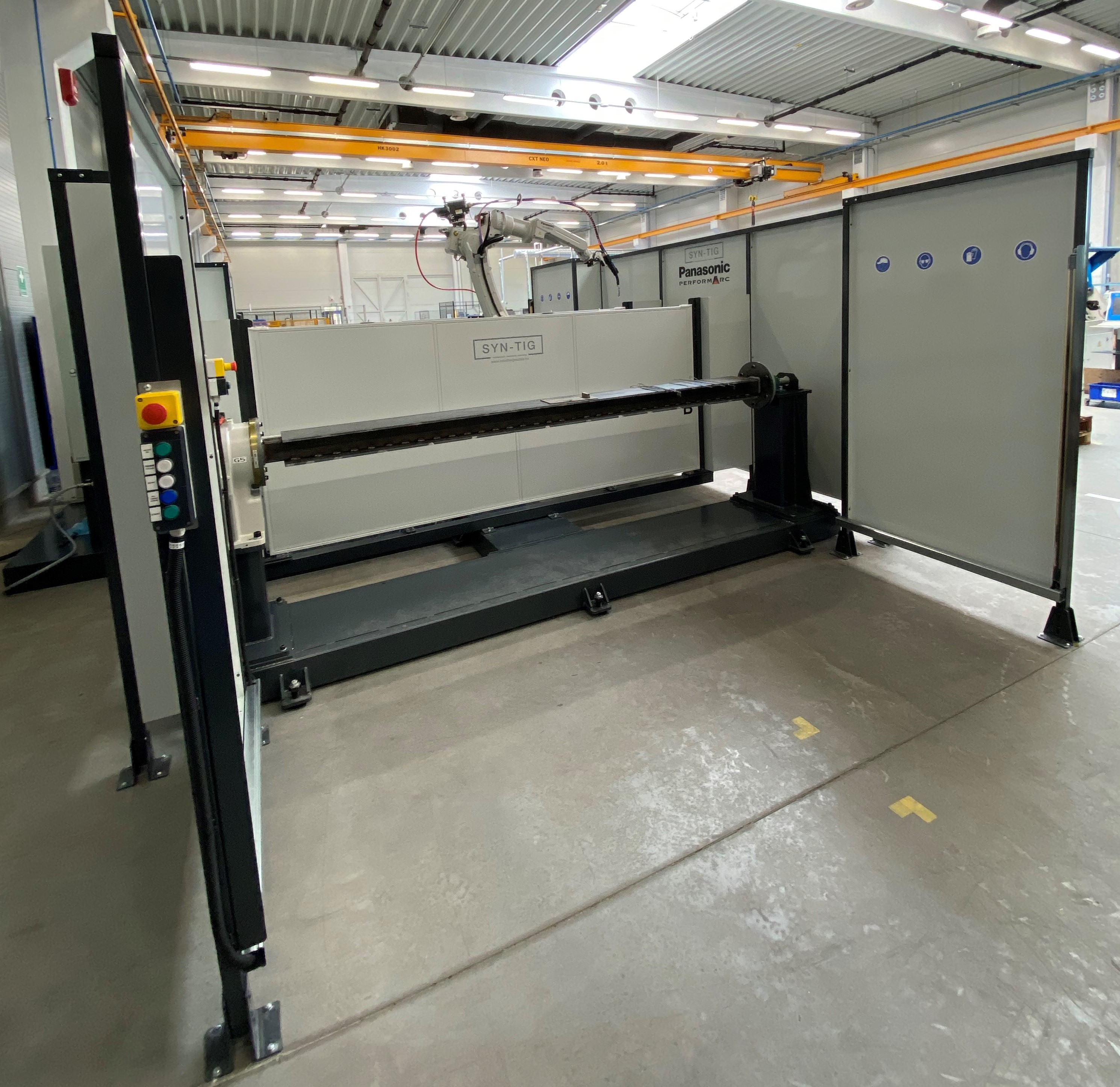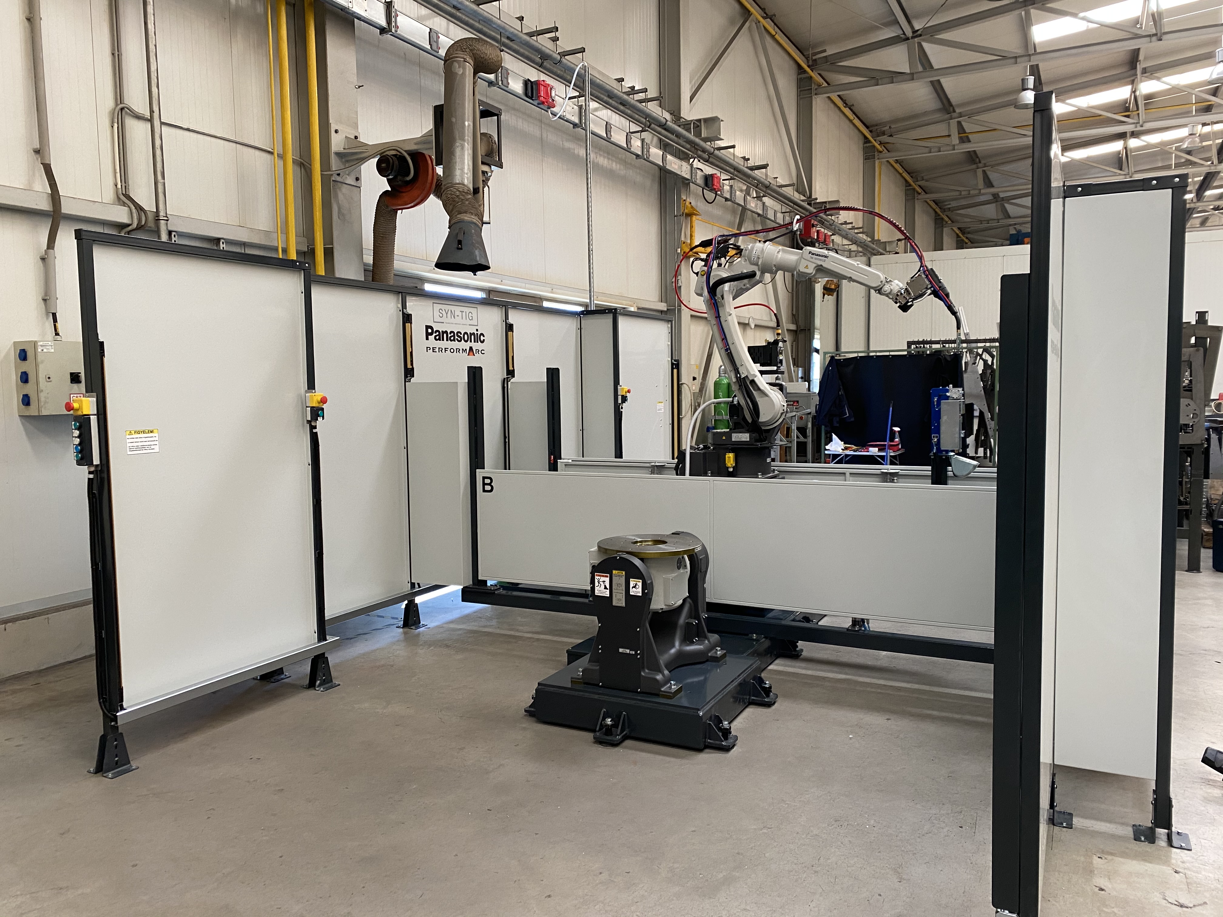 Robot típusa: Panasonic TM-1800Hegesztő áramforrás: Panasonic WG3 (350A)Munkakábel: Panasonic 400A vízhűtéses, szeparált kivitelPozícionáló berendezés: 2 x Panasonic PD500 (500 kg terhelhetőség)