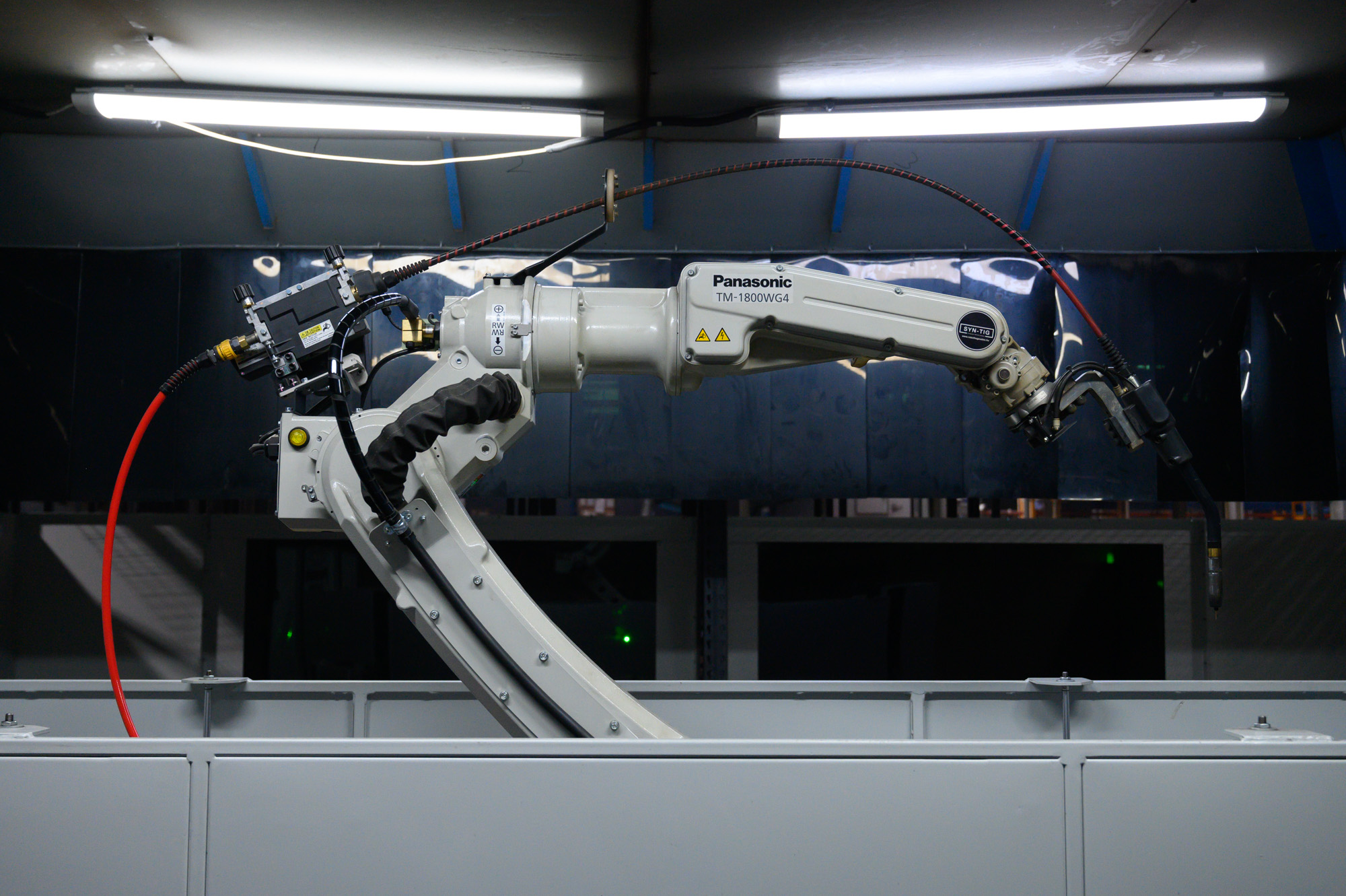 Robot típusa: Panasonic TM-1800Hegesztő áramforrás: Panasonic WG3 (350A)Munkakábel: Panasonic 400A vízhűtéses, szeparált kivitelPozícionáló berendezés: 1 x PD500 (500 kg terhelhetőség)Munkaterület: 1 x (L=3 000mm x d=1 300mm)