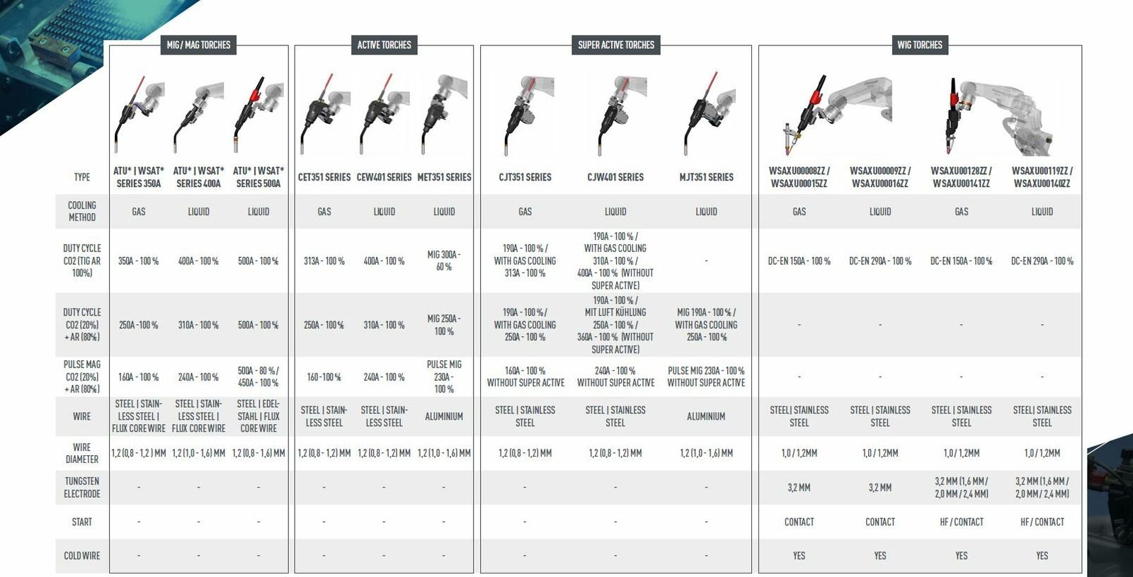 A Panasonic MIG / MAG / TIG pisztolyok: