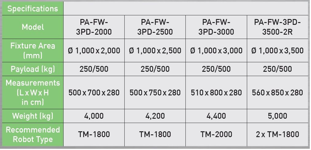 Az FW hegesztőrobot rendszer az alábbi specifikációk alapján is rendelhető: