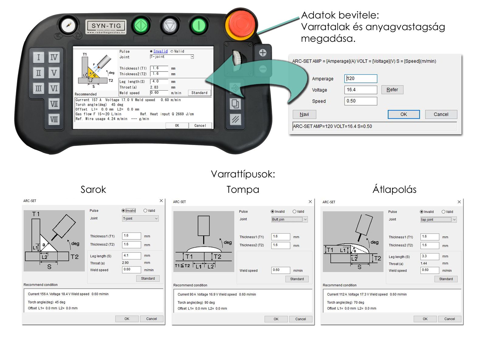 A szoftver ezután automatikusan javasolja a szükséges hegesztési paramétereket.
