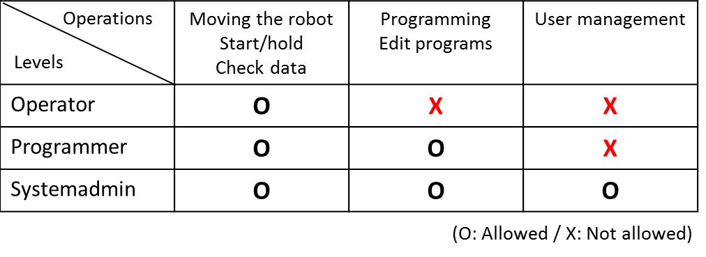 Többszintű hozzáférés: operátor, programozó, rendszergazda