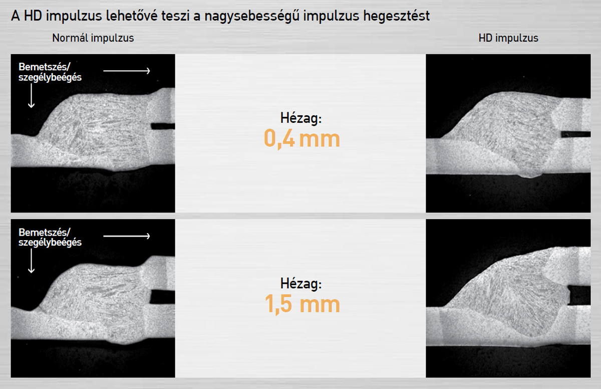 HD-Pulzus (Hyper Dip-Pulzus): Megakadályozza a szélbeégést, csökkenti a fröcskölést, kisebb hőbevitel