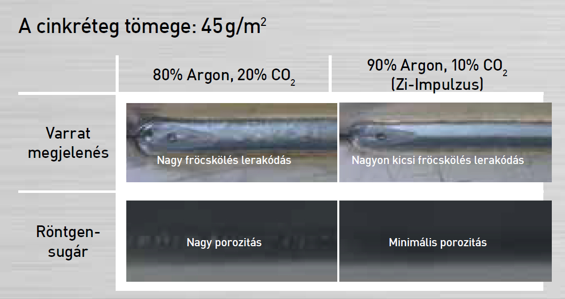 Zi-Tech / Zi-Pulzus: Horganyzott lemezekhez optimalizált, 90% Argon / 10% CO2 védőgázgal