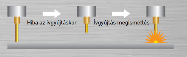 Ha ívgyújtáskor nem épül ki ív, a robot újrapróbálkozik és visszatér a kiindulópontra