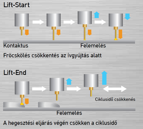 Megakadályozza a huzal letapadását a hegesztés végén, ezáltal növeli a folyamat biztonságát, csökkenti az utómunkát és biztosítja az állandó hegesztési minőséget.