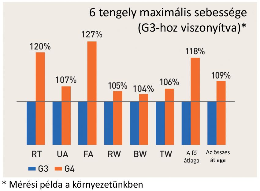 A WG4 és WGH4 modellek kihasználják a G4 vezérlő gyorsított tengelymozgását, amely akár 27%-kal gyorsabb ciklusidőt tesz lehetővé az előző generációhoz képest. A működési algoritmus felülvizsgálata a pozíciók pontosságának javítása érdekében. Ezek a fejlesztések jelentősen csökkenthetők a munkahelyek termelékenységét befolyásoló munkaveszteséget. Ezenkívül segít a termékminőség javításában, ami elengedhetetlen az üzleti sikerhez.